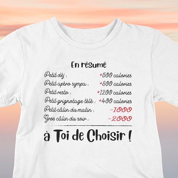 T shirt sexe humour calories ingurgitées ou dépensées pour faire son choix !